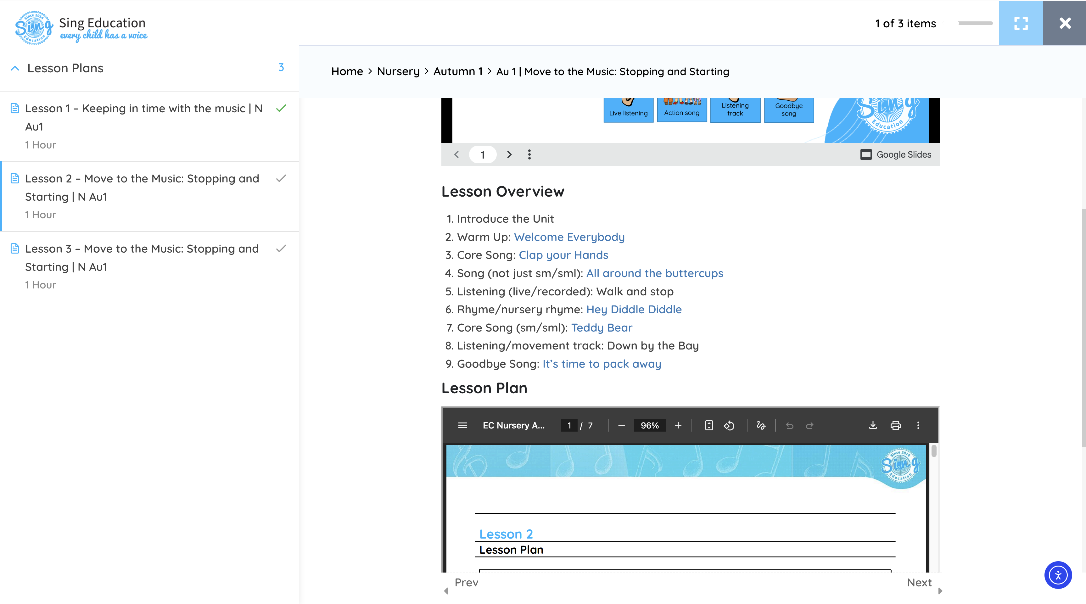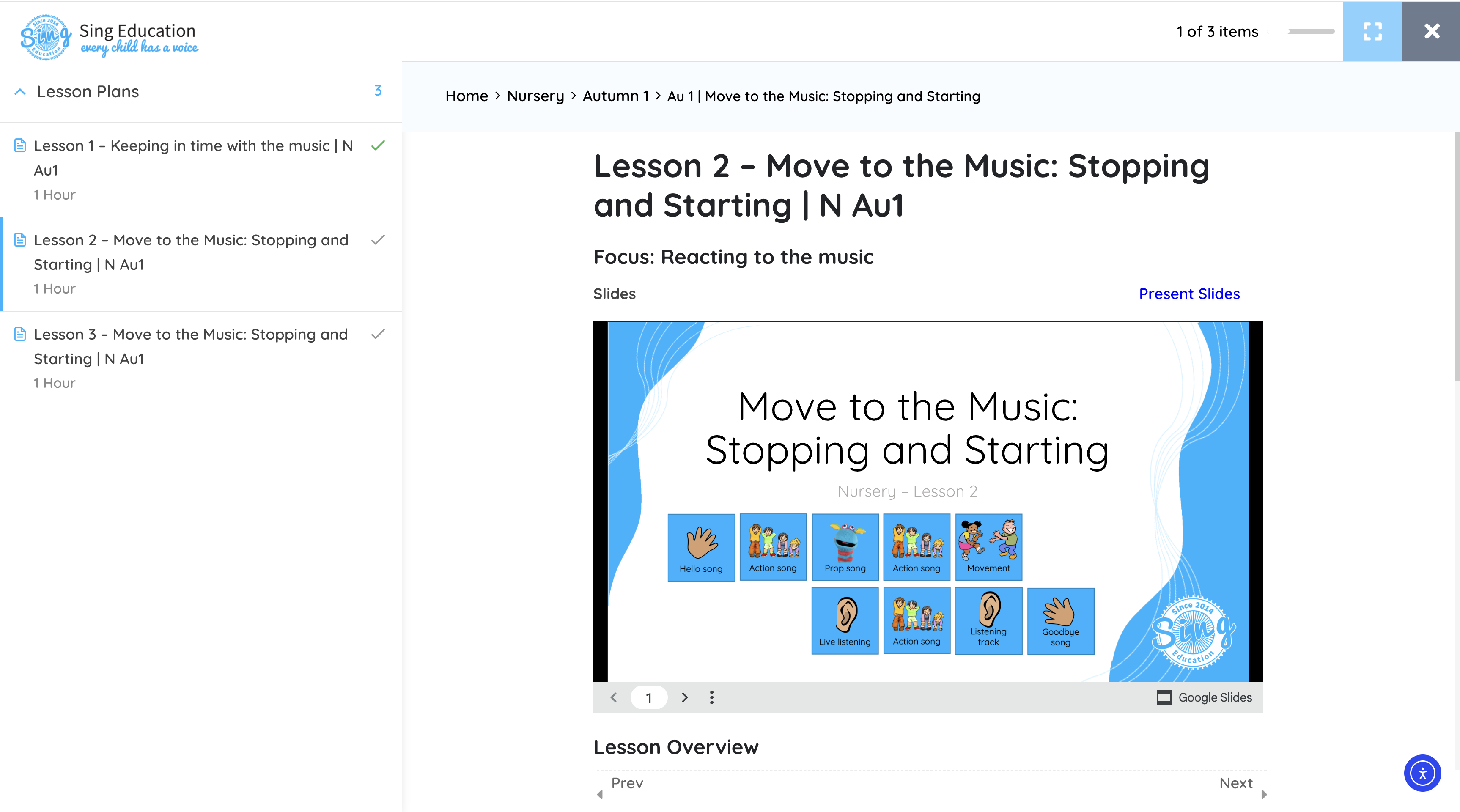In the main page you can scroll to see the slides, lesson overview and lesson plan