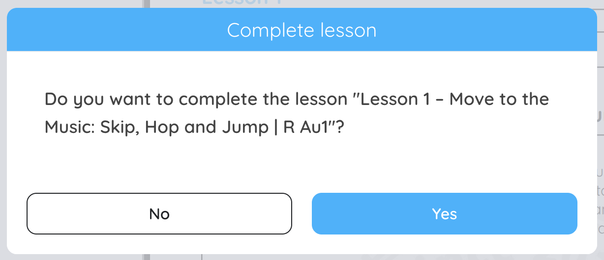 You will be prompted to confirm if you want to complete the lesson. Select "Yes"